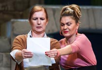 Unatoč trudu glumica, koje monologe uspijevaju učiniti dinamičnima i zanimljivima, u gotovo dvosatnom trajanju odabrani se pristup nije pokazao najboljim. Tome nisu pridonijele ni statična režija i scenografija Tomislava Pavkovića, obilježene krajnjom rudimentarnošću triju stolaca na kojima glumice sjede tijekom cijele predstave ...pročitajte cijeli tekst...