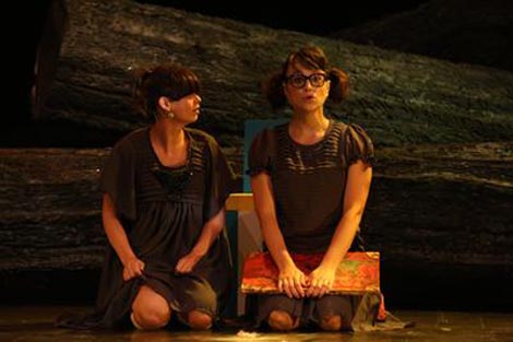 Tena Jeić Gajski i Daria Knez Rukavina igraju djevojčice izrazito dinamično, ubrzano, ostajući ljupke i simpatične. U sitnom sestrinskom nadmetanju sasvim su razumljive i dječja ih publika lako može razumjeti kao nekog bliskog njihovom iskustvu. I premda iz dnevnika, dakako, izlazi priča o Crvenkapici, stalno prekidanje radnje koje donosi pojava sestara, publici sugerira na koji način gledati priču sa zaštićenog mjesta u sadašnjosti.