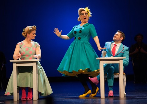 Za kostimografiju se koristi cijeli spektar duginih boja kao antiteza jednoumlju likova; one se pak sudaraju s brojnim elementima scenografije, posebice s nadrealističkim ilustracijama Hrvoja Marka Peruzovića koje dominiraju scenskom pozadinom, a negdje između ta dva kruga šarenila - publici jednako zbunjujući kao i samima sebi, doslovno vise Arijana Čulina i Nenad Srdelić. Sve je to zaokruženo histeričnim govorom i pokretima, a krajnji dojam je da se uprizorenjem na kojem je radilo puno glumaca, uz pomoć daleko previše boja, elemenata i riječi, kazalo i pokazalo - premalo.