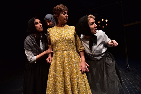 Izvanrednu i emocionalnu izvedbu u ulozi majke kreirala je Sanja Zalović u paru s Dominikom Karakašićem u ulozi neiskvarenog sina i njihov je duo dramaturški posve uspio. Isto vrijedi i za trio koji čine Irena Bausović, Tamara Šoletić i Anđela Ćurković Petković u višestrukim ulogama starica, građanki, aktivista i carinika, gdje njihova grupna kohezija i uigranost u songovima, mimici i koreografiranom scenskom pokretu (potpisuje ga Damir Klemenić) postaje vizualni i auditivni forte cijele izvedbe. Nešto nezahvalniju ulogu igrao je Juraj Aras kao narator i antropomorfni magarac, čiji crveni rep postaje poveznica između dva narativna sloja. Ovo je mjesto možda dramaturški ostalo nedorečeno u smislu vizualne i narativne kohezivnosti, gdje se na mjestima osjeti diskontinuitet u dijegetičkim slojevima priče, posebice u uparivanju metalnog objekta koji predstavlja magarca i živog glumca koji igra magarca.Treba posebno pohvaliti i autora glazbe i tekstova songova koji podižu atraktivnost i ludički aspekt predstave - Matu Matišića. Utilitarni kostimi Nataše Perović estetski se prožimaju s narativnim slojevima, akcentuirajući primisli na ruralno, socijalističko, urbano i aktivističko. Uz prisutnost majstora scene Roberta Košte i inspicijentice Radojke Kozulić u živoj izvedbi možemo se upitati bi li metateatralni i verfremdungseffekt bio još naglašeniji da su cijelu izvedbu na sceni pratili i dizajneri svjetla i tona Frane Papić i Mate Petričević i tehničar tona i rasvjete Marin Bakmaz te stolar Marijan Nižić, čime bi postupak bio cjelovito proveden. Zgodan dodatak predstavi je i programska knjižica Sanje Mrše Vukman s umetkom crvenog bookmarkera koji simbolički konotira crveni magareći rep iz predstave.
