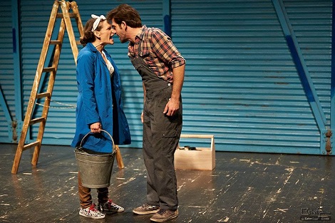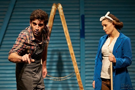 Daljnji problem je zasigurno i činjenica kako je Mađarić imao nekoliko funkcija, što mu je sigurno poremetilo izvanjski pogled i kontrolu nad scenskim uprizorenjem pa su glumci osim u temelju (dramskom tekstu) bili zakinuti i u čvrstoj ruci vodilji. Tako su i scenska radnja i publika smješteni na velikoj sceni HNK-a i odvojeni zastorom od ostatka kazališta, a scenografije nema. To jest, prostor scene je sam sebi scenografija, što ima logike jer je predstava temeljena na blizini publike glumcima, čime se potencirala atmosfera ali na blizini se samo i ostalo. Glumcima je dana sitna rekvizita poput vjedra, nekoliko krpa, kutije s alatom i drvenih ljestvi i sve što oni mogu je kontinuirano raditi repetitivne pokrete, bjesomučno vitlati krpe, sto puta se popeti na ljestve, pa tako gledamo kako Krsto vadi imaginarne čavle koje zaboravi izvaditi iz kliješta prije negoli vadi druge, pa ih malo vadi lijevo, pa malo desno po sceni, a jednako se događa i s Tonkom koja briše malo tu, malo tamo, ali zapravo ne ostavljaju uvjerljiv dojam obavljanja radnje. Jednako tako i promjene na sceni su repetitivne i šablonski rađene, bez nekog većeg redateljskog upliva. Ideja za redateljskom nenametljivošću je uvijek hvale vrijedna, ali ne i kad ta nenametljivost prelazi u izostanak.U ovakvom spletu svega navedenog kreacije Vladimira Tintora i Petre Blašković su jedino što drži pažnju publike, iako je nužno napomenuti kako su i oni pod utjecajem (ili neutjecajem) redatelja, dramaturga i autora bili evidentno nesigurni u pojedine situacije i motivacije svojih likova. Međutim, na mjestima na kojima su se imali za što uhvatiti, to su odradili izvrsno. Bili su uvjerljivi u svojoj interpretaciji, prenosili su atmosferu na publiku, živjeli su za i sa svojim likovima, nijansirajući vješto promjene kako su se događali obrati u scenskoj radnji te su uspješno ostvarili kemiju mržnje kroz gestu i mimiku, pojačavajući dojam uvjerljivim scenskim pokretom prilikom sukoba.