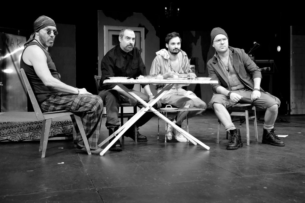Kako su rano ostali bez roditelja, za njih se brinuo najstariji brat Levi. U trenutku kada su mu braća odrasla, zaključio je da je došlo vrijeme da se posveti sebi, pa ako je nekoć i radio, sada se želi posvetiti samo sebi te vrijeme provodi u mudrovanju o smislu komunizma i demokracije. U maestralnom tumačenju Ranka Zidarića on postaje karikiran odraz ljevičarskih ne samo političara nego i intelektualaca koji uživaju u dubokim razmišljanjima, odustajući od bilo kakvog djelovanja. No, i ostala su braća uglavnom utočište našla orijentacijom na jednu gotovo isključivu liniju djelovanja. Enes Vejzović, vrlo uspjelo balansirajući na granici karikature i umjetničke opsjednutosti, Adama interpretira kao čovjeka koji čitavo vrijeme nastoji bez puno uspjeha skladati domoljubni hit u okviru alternativne glazbe, što je Ivanu Josipu Skenderu omogućilo skladanje glazbe koja na vrlo originalan način oblikuje izgubljenost mnogih u tom vremenu. Trećeg brata Stanka Ivan Grčić s primjerenom suzdržanošću igra kao čovjeka koji sanja o tome da će mu njegovo pisanje (a možda i performansi) jednog dana donijeti slavu i novac. Nekad je vjerojatno i radio, bio i oženjen, ali je od svega zapravo odustao i vratio se braći.