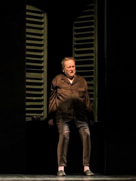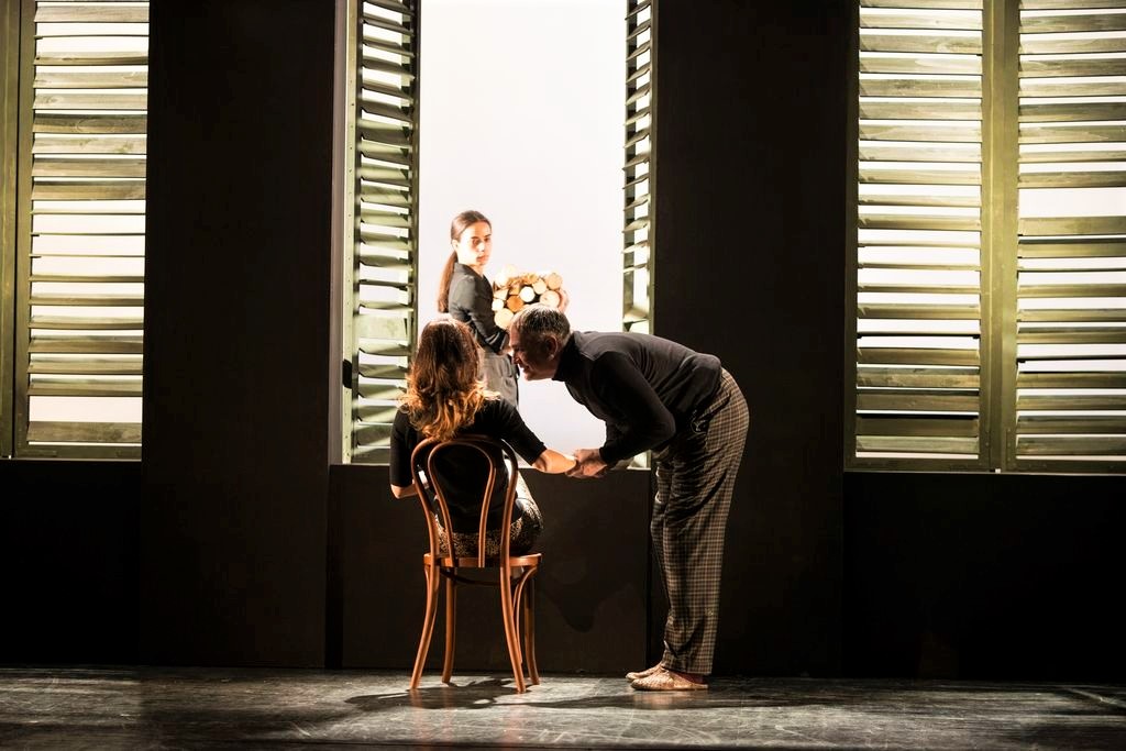 Scena je, naime, podijeljena na dva dijela nizom od četiri visoka otvora, prozora zatvorenih golemim roletama, koje glumci povremeno otvaraju i zatvaraju. Moguća značenja su višestruka - od pokušaja provjetravanja, preko ustajalosti (dijelovi roleta su, unatoč impresivnim dimenzijama, slomljeni), do odvajanja dvaju svjetova - onog vani, u kojem se s vremenom barem pokušava nositi i onog unutra, u kojem vrijeme samo čini svoje i dokazuje se kao nesmiljeno. Bez obzira na značenjsku mnogostrukost, ili baš opravdano njome, scenografsko rješenje pokazuje se kao bitan, integralan dio predstave, stvaranja specifične atmosfere i neprekinute podijeljenosti prostora na onaj izvan i onaj unutar kuće, što sugerira i unutarnju podijeljenost likova između stvarnih dosega mogućnosti i želja.