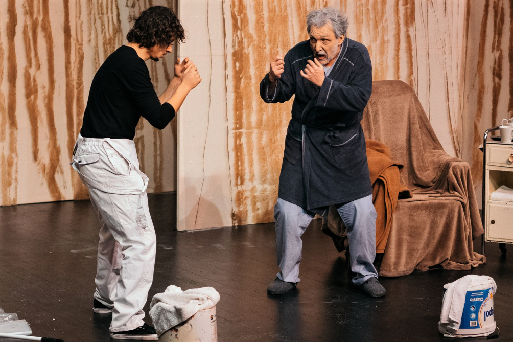 Radnja je cijelo vrijeme poticajna, nose ju razgovori. Scenografija, kulise s najlonima po zidovima pripremljenima za bojanje, nadasve je zanimljiva, dok su zvučni efekti, poput grmljavine, dakako upečatljivi. Dobra je glazba skladatelja Milorada Stranića, koja uz zamračenje kada je starac sam, uspješno donosi atmosferu usamljenosti, tuge. Glumci simpatično tumače likove. Duo je odlično glumački dočarao postepeno zbližavanje generacija sve do međusobnog pomaganja mladića punog osjećaja i elana te starijeg čovjeka punog iskustvene mudrosti, kao nekog životnog učitelja.Redatelj je skladno isprepleo radnju i bogatstvo poruka te izgradio predstavu putem koje mnogi, inače lijepo verbalno oblikovani savjeti, bivaju upućeni gledateljstvu. Kraj je pozitivan, donosi nadu, ali ne i neki naglasak. No ono što se tijekom predstave potiče može učinkovito nastaviti odzvanjati u razmišljanjima gledatelja.
