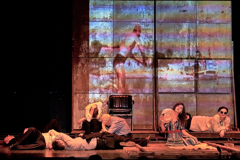 Novljaković je tako od proznog predloška (namjerno ga tako nazivam, pošto roman još nije dovršen i autorica je za potrebe predstave napravila svojevrsnu skicu na kojoj i dalje radi) uspio stvoriti funkcionalnu cjelinu koja nenametljivo i neopterećujuće priča veliku i društveno aktualnu priču. Moja jedina zamjerka je u samom trajanju predstave, jer se ne mogu nikako oteti dojmu da je zgušnjavanjem radnje došlo do neželjenih rezultata - poput činjenice da je sve što su željezničari radili bilo uživanje u alkoholu zbog čega su i imali probleme na poslu i u obitelji, da su scene koje se bave slavnim danima kolodvora kratke i riješene većinom skicoidno uz pomoć projekcija, dok se naglasak stavlja na tmurnost i pesimizam. Zanimljivo je to u predstavu ubacio i sam redatelj (iz potpuno drugih razloga) kada se na projekcijama stalno govori kako se narodu ne mora prikazivati samo ono najgore, nego da se usmjeri pažnja i na ono što valja.Glumački ansambl, koji je brojao osam članova ali puno više likova, čine glumci vinkovačkog kazališta, osječkog HNK, Dječjeg kazališta Branka Mihaljevića i studenata Akademije za umjetnost i kulturu iz Osijeka, pa se može reći kako je Novljakoviću na raspolaganju bila doista probrana ekipa. Vladimir Andrić, Matea Marušić, Miroslav Čabraja, Selena Andrić, Ivica Lučić, Vedran Dakić, Matko Duvnjak Jović i Zorko Bagić funkcionirali su kao jedno i to se u krajnjem rezultatu i vidi. Nitko se od navedenih nije izdvojio, ali u pozitivnom smislu, demonstrirajući kolektivnu kvalitetu i zajedništvo. Svi do jednog bili su koncentrirani, jasni i precizni u dikciji, a ponajviše su se isticali u fizičkim transformacijama i pokretu.