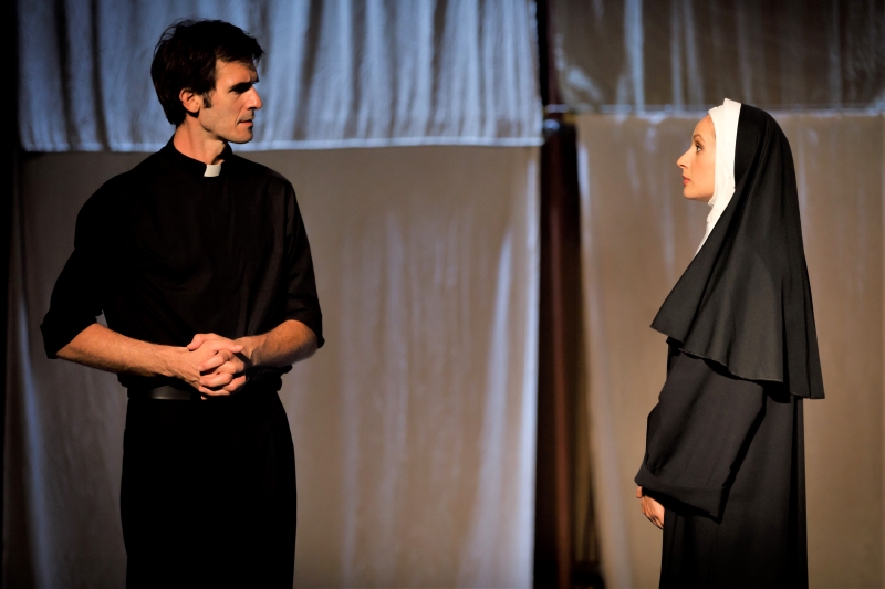 Veći je problem kako u ovako postavljenu predstavu uklopiti ostale likove, koji nisu dio svećeničkog kompleksa. Među njima je, iako redovnica, svakako i središnji, naslovni lik Glorije/sestre Magdalene/Jagode Kozlović, koji igra Katarina Romac. Ionako kompleksu ulogu koja zapravo mora balansirati između tri karaktera u jednom liku žene koju su vlastite životne mijene i dovele do istovremeno spektakularne i tragične pozicije oživljene Majke Božje na oltaru, Romac je oblikovala staloženo i bez iskakanja, s galantnim prijelazima od strasne artistice do staložene redovnice, preko ponovnog buđenja emocija u njoj do tragičnog kraja, no ta zapravo vrlo dobra kreacija, očito ne glumičinom krivnjom, ostala je zasjenjena dominacijom muške komedije karaktera.
