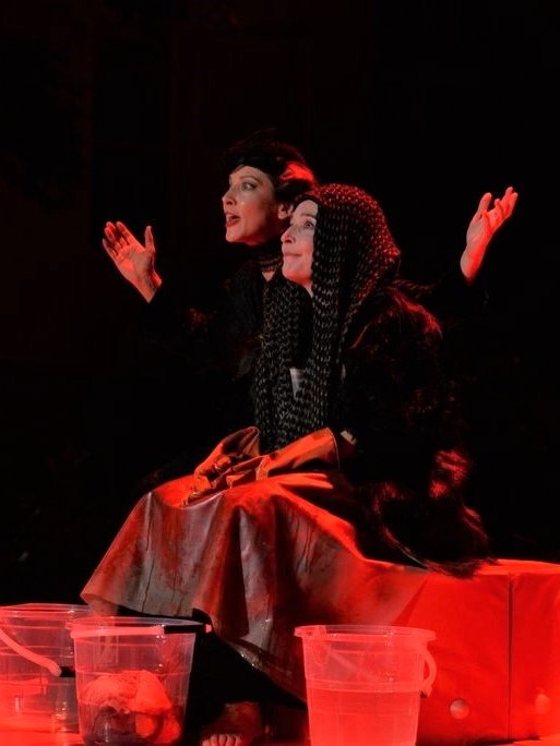 U središtu pozornice je element crvene boje koji asocira na cirkus, a u nekoliko situacija i služi za izvođenje cirkuskih točaka. S dvije strane je po nekoliko stolaca, od kojih oni lijevo služe vrsnim glazbenicima Luciji Barišić i Matiji Antoliću kojima se efektno pridružuje i Siniša Ružić koji u predstavi ima i iznimno uspjele glumačke epizode, dok sjedala s desne strane uglavnom zauzimaju glumci koji ne sudjeluju u prizoru koji se tog trenutka odvija. Sve to smješteno je u velik prostor koji zahvaljujući sakralnim motivima na nadsvođenim prozorima djeluje kao crkva. Suprotnosti a i sličnost religije i cirkusa, koji ukazuju i na svakodnevicu i na predstavljačku umjetnost, potenciraju i uspjeli kostimi Nine Silobrčić i Emilije Šušković Jakopac s također čestom uporabom crvene boje korištene i za cirkuske kostime i svećeničke halje.