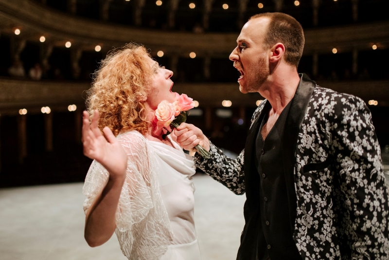Muževna ženstvenost i ženstvena muževnost pretaču se u karakternim notama glavnih glumaca, Aleksandre Stojković Olenjuk u ulozi Viole i Cezarija te Edija Čelića kao Orsina koji očekuje Olivijinu privolu na ljubav. Scenska snaga i koncentracija, uvjerljiva izdržljivost u glumačkom zadatku, uzdižu mladu riječku glumicu u zavidne visine. Prateći glumačke vještine Aleksandre Stojković Olenjuk, mogli bismo uvesti za publiku jedan novi gledateljski trenutak – scensko iščekivanje glumca. Energija koju donosi jednostavno je zarazna. Edi Čelić pak s isto tako uvjerljivom lakoćom donosi Orsina koji robuje iščekivanju ljubavi ženstveno emotivan i stopljen s emocijom, kao i haljinama koje nosi.Sve iskazano tako je pažljivo i nenametljivo izloženo na scenu da se najavljena travestija multiplicira do ekstaze doživljaja u kojem više nije važno voli li muškarac ženu, žena muškarca ili žena ženu a muškarac muškarca; pozornicom vladaju Shakespeareovi stihovi i ljubav pretočena u amorfnu, opijajuću atmosferu. Propitivanje identiteta postaje dio igre. Viola prerušena u mladića zaljubit će se u Orsina kojemu služi pod lažnim identitetom – nazvala se Cezario. I naizgled distancirana Olivija zaljubit će se. Oliviju je vrckavo i snažno odigrala Tanja Smoje, snažno u autoritativnome NE usmjerenom Orsinu, kao i ženstvenome DA dragome joj Cezariju. Sve se zbiva u zamišljenoj Iliriji gdje se nakon brodoloma razilaze brat i sestra, Viola i Sebastian, ne znajući da su oboje preživjeli nesreću. Iz zagubljenih sestrinske i bratske bliskosti, izgubljenosti i potrage, krenut ćemo u pustolovinu pronalaženja, očekivanja, pretvaranja, služenja njoj, kraljici svih čežnji, očekivanja i patnji - ljubavi!