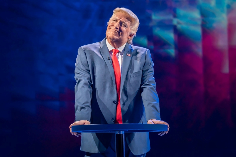 Ali na praizvedbi je sasvim u redu maksimalno poštivanje djela, pa je tako učinio i redatelj Rupert Goold, dugogodišnji umjetnički ravnatelj slavnog londonskog teatra Almeida, dosad dvaput ovjenčan Olivierom za najboljeg redatelja. Tako smo u prvom dijelu predstave dobili autentični američki predizborni spektakl s konfetima, zastavama i svim ostalim što ide uz to, da bismo u drugom (po meni boljem) dijelu predstave uronili u intimnu Trumpovu priču.