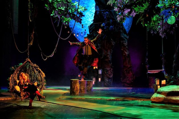 U vilinskom svijetu te su noći za igru s ljudima ali i međusobne podvale i smicalice tako posebno bili raspoloženi vilinski kralj Armin Čatić kao Oberon, Sandra Lončarić, odlična žena mu Titanija i vilenjak Puk u izvedbi Matije Kačana. Oni se vole i mrze i uspiješno se poigravaju mladim zaljubljenim Atenjanima, ali im i sućutno popravljaju krive životne izbore. Ali i griješe, pa se svijet vila i vilenjaka zrcali u svijetu ljudi baš kao što i ljudski svijet okupljen u atenskoj šumi nalazi svoj odraz u ljubavima, prevrtljivostima i hirovima vila i vilenjaka.