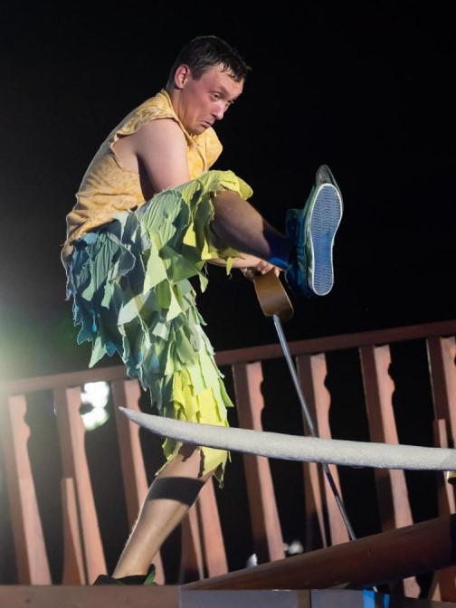 Brzim izmjenama kostima, pa tako i uloga, postignuta je filmska dinamika i lakoća izvedbe kojom je odisala cijela predstava. Svaka živa izvedba je jedinstvena, a izlazak kazališta iz organiziranog prostora u prostor koji mu nije namijenjen, i još ovakve impresivne veličine, donosi sa sobom brojne rizike od vremenskih uvjeta (na premijeri se osjetio vjetar koji je dodatno manipulirao kulisama i rekvizitima), organizacije pozornice otvorene sa svih strana, svjetlosnih mogućnosti ili nemogućnosti, i uz sve to potrebno je prilagoditi predstavu publici u gledalištu i ispred malih ekrana. Brze i precizne izmjene scenskog prostora iz spavaće sobe, u šumu, gusarski brod i obrnuto, podržale su dinamiku i dobar ritam predstave koja je strukturirana od niza slika, no kompaktna je i nema vremena za opuštanje. Prepoznatljivi segmenti ove priče povezani su lutkama-figurama životinja, ptica, riba, meduza koji stvaraju atmosferu i nagovješćuju narednu scenu. Petar Pan u ovoj varijanti kao hibrid glazbe, kazališta, plesa i likovnosti je podvig u kojem je sudjelovalo dvjestotinjak ljudi.