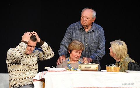 MIŠKA: Ženica moja… Jo ve znova japa… Jo, skorom stori čovek, ve otec. Pedesetka je prešla i jo ve japa. Ženica moja… prosim te reči da je ne istina da si trudnica.