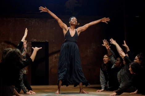 Žene u koru su snažne, odjevene u crno, baš poput glavne junakinje Medeje, koju ponosno, uznosito glumi na čistom engleskom talentirana Adura Onashile. Njezina Medeja nije vještica, čarobnica, boginja… Iako je vješta u spravljanju otrova, obična je žena. Žena koja govori strani jezik, u tuđem svijetu, s djecom, koju će u dvije laži iznevjeriti vlastiti otac, baš kao što je iznevjerio i nju.