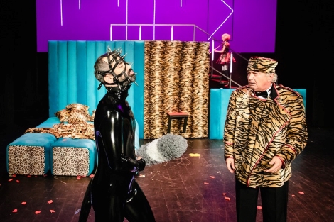 Uniforme osoblja Vragolaste mace na kojima se, baš kao i na tapetama pokretnog zida, pojavljuje uzorak tigra, lateks, pa i seksualne igračke, gotovo da crtaju o kakvom se mjestu radi. Mada nelijepa, sva ta kičasta kostimografska šarada nije besmislena. Pokazuje kako Feydeauova farsa funkcionira i u suvremenom duhu vremena, koje je kič odvelo do norme, učinivši ga dostupnijim nego ikada prije kroz masovnu proizvodnju robe široke potrošnje. Istovremeno, bombastična mizanscena, koliko god možda pristajala suočavanju Feydeauove farse sa suvremenim duhom vremena, odvlači pozornost sa zapleta, gušeći tako potencijal farse, čiji je temelj ipak u majstorskoj gradnji odnosa između likova. Konačno, ne može se oteti dojmu da cjelokupna vizualna komponenta evocira prethodnu veliku premijeru varaždinskog kazališta, ujedno inauguralnu za intendanticu Bulić – Bogove u režiji Dalibora Matanića. Bit će zanimljivo u narednim produkcijama vidjeti je li to, možda, vizualni smjer u koji se varaždinski HNK odlučio zaputiti.