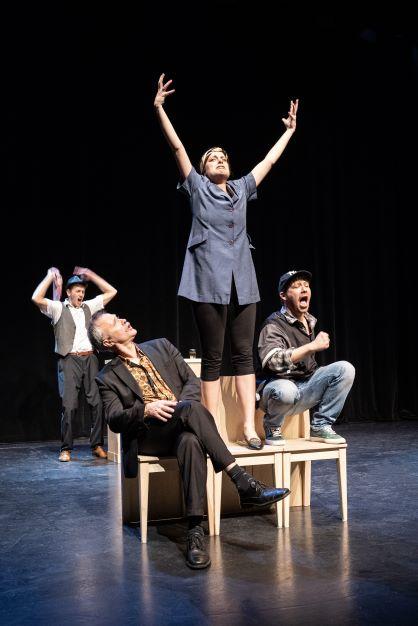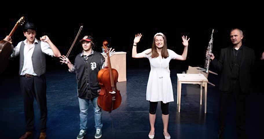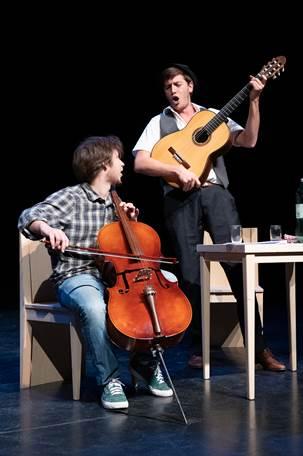 Međutim kad ustanovi da Josip zna svirati violončelo i na njemu pratiti kajkavske popevke, pristaje mu dati utočište, da bi se situacija potpuno promijenila u trenutku kada se sazna da je gradonačelnik preminuo. Pomalo stereotipnu komediju zabluda Filip Sever vrlo dobro oživljava, igrajući obje uloge ne samo glazbeno i pjevački nego i glumački uvjerljivo. Damir Horvat autoritativno nastupa kao mafijaš, a posebno efektno koristi saksofon i kao glazbalo i kao automatsku pušku. Zabavnosti i zanimljivosti predstave koja ističe vrijednosti zagorskog govora i mentaliteta znatno pridonosi tumačeći različite ženske likove vrlo talentirana mlada glumica Sara Blažić, nedavno diplomirala u Rijeci kod Rade Šerbedžije i Lenke Udovički. Tom kolopletu raznih lica i različitih interpretativnih izraza cjelovitost i iznimnu živost dala je režija Marije Antić koja se u raznim neovisnim produkcijama (a najčešće u Triko Cirkus Teatru) pojavljuje uglavnom kao dramaturginja.