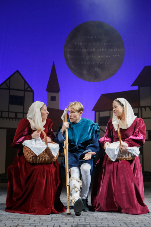 Redatelj Paolo Tišljarić, koji je potpisan i kao scenograf i kostimograf predstave, slaže uredno i ritmički izbalansirane, kako ovakva scenska forma i zahtjeva, igrane, pjevane i plesne prizore i scenske slike bajkovite atmosfere kojoj u punoj mjeri doprinosi dosluhni, nadahnjujući i inspirativni važan prinos oblikovatelja svjetla Marka Mijatovića. Unekoliko suženi glumački zadaci u funkciji su ovakvog redateljskog i dramaturškog koncepta u koji su se skladno uklopili Boris Matić kao učitelj, Bojan Beribaka kao Niko, Nika Lasić i Angela Bulum kao Građanke Lenna i Lina. Pojavom, maskom, kostimom i decentnim nagovještajima sudbinskih događanja u kronologiji maloga grada, važan prinos izvedbi dala je kao frulaš u pomalo trubadurskoj maniri Marija Šegvić, kao i Edi Jertec u ulozi prevrtljivog, arogantnog, licemjernog i manipulatorskog kneza koji iskorištava nevolje puka za svoju korist.