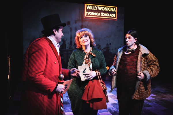 Glumci su u brzoj izmjeni replika i scena naglašavali svoju dominantnu osobinu – dojmljiva mi je bila kreacija Ane Vučak Veljače koja se iz naizgled mirne i pristojne djevojčice milog osmijeha pretvarala u iritantnu malu zvijer koja potpuno podivlja kad ne uspije dobiti sve što poželi, u „odurnu katastrofu“, kakvom je naziva Willy Wonka. Njezino razmaženo vrištanje „kupi, kupi, kupi“ kao i iskvaren stav da je „sve na prodaju“, podsjetili su me na mnogu današnju djecu koja, nažalost, tako razmišljaju i slično se ponašaju. Radovan Ruždjak imao je nezahvalan zadatak jer sam ga neminovno uspoređivala s njegovim filmskim holivudskim kolegama kojima svojim Willyjem Wonkom može ponosno stati uz bok. Podsjeća pomalo i na Johnnyja Deppa i na Gene Wildera, no ostvario je svog, autentičnog Wonku u kojemu ima ludizma i sarkazma – na svoj je način vrckav i ekscentričan. Od uzbuđenja neprestano gricka nokte i skakuće, osobito kad s ponosom pokazuje dijelove svoje velike igračke – tvornice. Ne skriva razočaranje i prezir prema pojedinoj djeci i njihovim roditeljima, govori sve što misli, ponekad čak i zlobno, te je istovremeno i simpatičan i antipatičan.