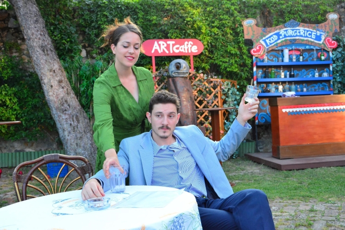 U vrlo dinamičnoj predstavi brze izmjene prizora glume mladi glumci i glumice – možda najmlađa ljetna postava Histriona dosad, a to su Dea Presečki u ulozi Barice, vlasnice kafića Kod Purgerice, već nagrađivana mlada glumica, zaigrana i šarmantna, dominantna na sceni, zavodljiva i publici draga; Jakov Zovko je građevinski poduzetnik, precizan i pouzdan, iako ponešto suzdržan na premijeri, ali nadamo se da je to bila smo početna nervoza i da je u srpanjskome i kolovoškome nizu predstava pokazao svoje glumačke mogućnosti; Marko Hergešić je političar, zadovoljan i siguran na sceni, pomalo predvidivih reakcija; a Bogdan Ilić konceptualni je umjetnik, maksimalno angažiran i dinamičan, ali smo također sigurni da će s vremenom biti sve bolji. Ivan Grčić je kao konobar samozatajno pozicioniran, kao motritelj događanja, sveprisutan je i s malim glumačkim sredstvima postiže uvjerljivost karaktera potencijalnoga ženika.