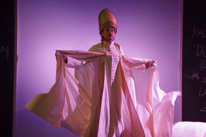 Filmska interpolacija mora biti izvrsno realizirana kako bi njezina funkcija bila umjetnička, tako da bi u ovoj blizanačkoj predstavi Marijino pojavljivanje na sceni bilo efektnije, a glumica Dea Presečki činila bi određeni ženski kontrapunkt blizanačkoj energiji (u Gavellinoj predstavi Nataša Janjić) i bila za predstavu bolje rješenje nego samo kao pojava na filmu koji je u nekim kadrovima, kao što su koncentrični šareni krugovi svijesti i podsvijesti, iskliznuo u estradu, a ni crno projekcijsko platno na sredini scene (iza kojega su povremeno prolazili gledatelji koji su zakasnili jer nisu znali za promjenu mjesta izvedbe) nije najbolje rješenje. Redateljica o ulozi Marije govori: „To je žena koja ni kod Krleže nije dobila važnu dimenziju, a kamoli kroz povijest, kroz tumačenje Biblije, a i do ovih naših suvremenih događaja kada se osporava ženska samosvijest i sloboda. Marija, pitanje ljubavi, ženskosti, tjelesnosti, u našoj predstavi ima važnu dimenziju.“ Nikša Eldan dodaje: „Ona prikazuje još jednu razinu kojom se u predstavi bavimo, a to je pitanje Isusove tjelesne ili netjelesne ljubavi. Taj dio odnosa u komadu postoji i u predstavi.“ Njezino fizičko pojavljivanje bilo bi za predstavu bolje i dodalo joj novu dimenziju. Treba napomenuti da Dea Presečki (na snimci) izvrsno pjeva hebrejsku narodnu pjesmu Shalom Aleichem (Mir s vama), a u kazališnoj knjižici zahvaljuje se grupi LAIBACH na ustupljenim pjesmama: Achtung! i Satanic Versus. U predstavi su korišteni i glasovi glumaca i glumica: Marinka Prge, Zdenka Brleka, Helene Minić Matanić, Barbare Rocco i Marinka Leša.