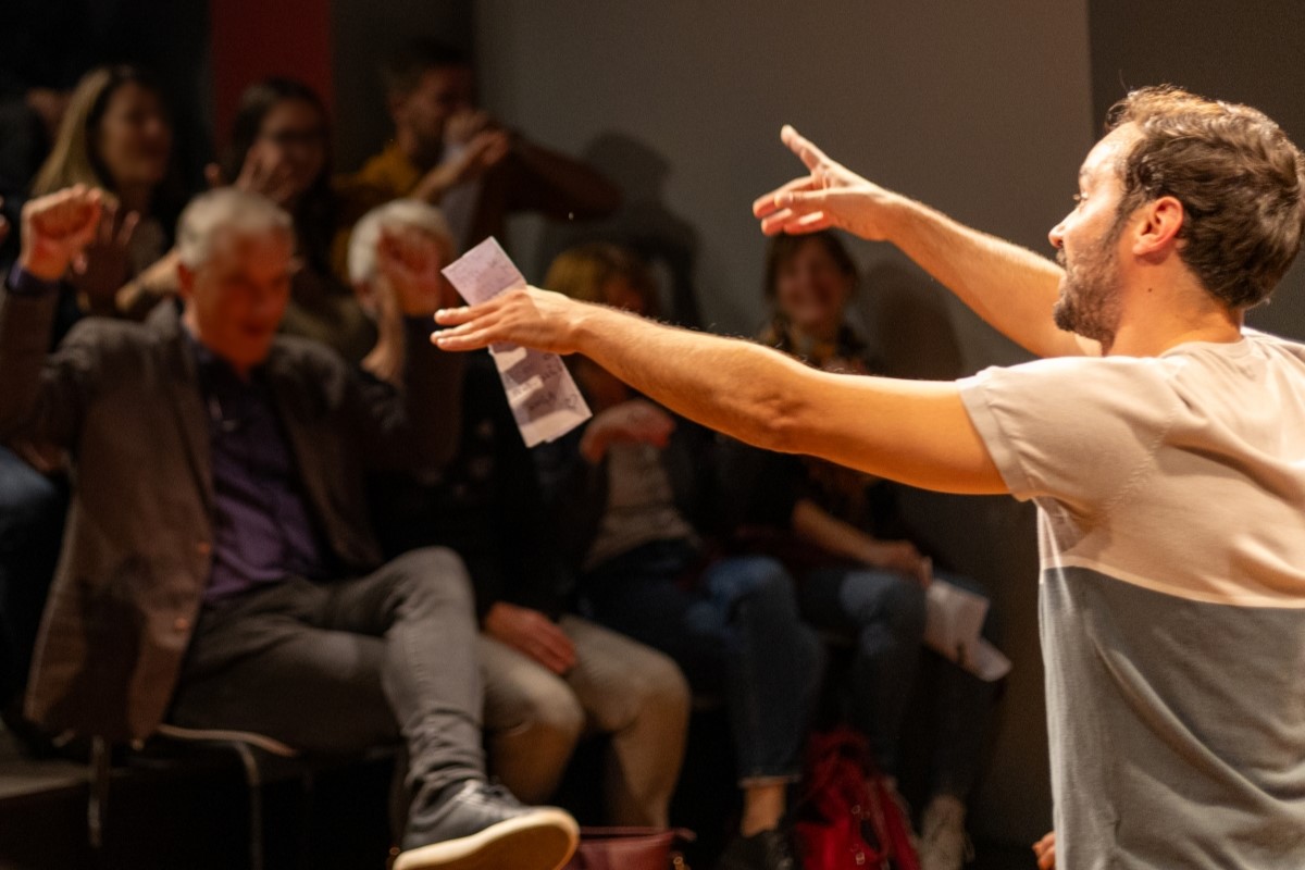 Neobično je zanimljivo sociopsihološki promatrati profile nekih gledatelja koji su se možda željeli baviti glumom, a to im ili nije uspjelo ili su se usmjerili nekoj drugoj, isplativijoj djelatnosti. Moguće je i da stalna dostupnost svakoga svakome, mobiteli, platforme, društvene mreže koje svakoga stavljaju u središte imaginarno kreiranoga svijeta dvadeset i četiri sata na dan, a ne samo (u) 5 minuta slave, oslobađa gledatelje treme i oni bespogovorno prihvaćaju sve glumačke izazove, ne srameći se i ne negodujući, sa zadovoljstvom. Neki ipak nerado sjednu u prve redove zbog mogućih izazova takve vrste, želeći se u mraku gledališta fokusirati na crnu kutiju kazališta u kojoj su glumci na pozornici i ne silaze, ne ulaze u gledalište. Ali mraka nema i svi su ogoljeni i pod svjetlima kazališnih reflektora. U Studiju EXIT uvijek se može očekivati neko iznenađenje, pomicanje granica, žanrovska heterogenost, hibridnost, drukčija glumačka ekspresija. U mnogim kazališnim predstavama u kojima glumci pozivaju gledatelje na scenu to završi djelomičnim (ne)uspjehom i/ili (s) ohrabrujućim pljeskom publike. Matko Raguž, glumac, redatelj i ravnatelj Kazališta, glumac Filip Križan i skladatelj Matija Antolić uvijek izazova kreiraju drukčiju zbilju. Nenapadno, lagano, ali uvjerljivo Križan bira suglumce koji mu pariraju izvrsno, uz male upute, i glume veterinara, djevojku, oca, terapeutkinju, sveučilišnu profesoricu. Tako se predstava iz ludičnosti početka, duhovitosti, smijeha, dijeljenja obilježenih papirića prelijeva u kazališnu seansu u kojoj su svi gledatelji sudionici psihotičnoga, tužnoga i melankoličnoga svijeta dječaka koji je, kako bi zadržao prisebnost i potaknuo sreću koja mu stalno bježi, ispisivao sve riječi koje ga čine sretnim. Papiriće dijeli gledateljima koji izgovaraju riječi i sintagme koje za svakoga imaju novu semantičku vrijednost i bude različite asocijacije. Kao da se tim misaonih procesima puni mali prostor kazališta koji postaje veliki svijet naslućene sreće. Papirića je s ispisanim sretnim riječima, sjajnim stvarima, saznaje se, tisuće i tisuće, milijun sjajnih stvari koje možda pobijede majčinu depresiju i anuliraju njezine pokušaje suicida. „Imaš 7 godina. Mama je u bolnici. Otac kaže da je ona učinila nešto glupo. Majka ne može naći razlog za sreću. Ti počinješ zapisivati sve što ti padne na pamet, a što bi bilo vrijedno življenja. I tu listu ostavljaš na njenom jastuku. Znaš da je čitala, jer je korigirala pogrešno napisane riječi.“