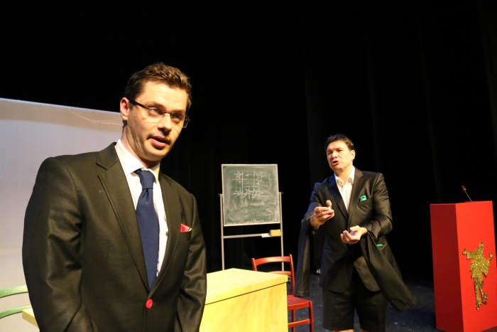 S obzirom na to da su doista u svojim izvedbama bili poprilično izjednačeni – ne ulazeći u osobne preferencije bilo koga u publici, s reakcijama publike (kojih je bilo dosta) jer je predstava iznimno interaktivna obojica su se izvrsno snalazila, improvizirajući i reagirajući svaki put bez greške.