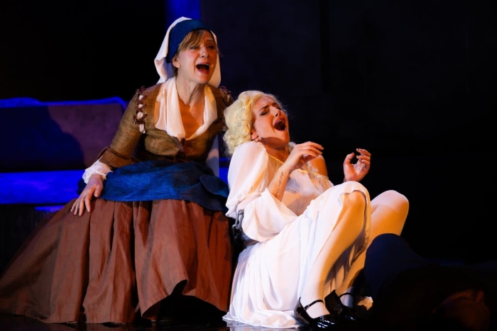 Živopisnom kostimografijom nekih davnih vremena (dok su svijetom kraljevali dobri vladari) i ingeniozno riješenom scenografijom koja otvara dubine zapleta, upravo kao što i realistično tonsko slikarstvo samoga Vermeera otvara geometrijsku perspektivu svih njegovih platna na kojima nijedan detalj ne može promaći promatračevu oku, scena oživljava duhovitim dijalozima između simpatične Anne i brižna joj muža Bartolomea, po zanimanju svjećara, u njihovim bezazlenim dnevnim prijeporima tipičnima za bračni par u iščekivanju prinove. Mia Vladović i Maro Drobnić autentično su i s puno humora oživjeli sitne manipulacije u ženskom obliku kao dominantne silnice spram muška neopreza, naivnosti i popustljivosti u nabavljanju matovilca kao neizostavne superhrane za trudnicu. Da zavedenost uvijek plaća ceh negativnim i mračnim silama, uskoro će u punu sjaju na scenu gromoglasno donijeti zastrašujuće lijepa pojava čarobnice Sigrid, kraljice ohole samoživosti, spremne učiniti sve kako bi zadržala vječnu mladost. Sigrid je na tragu svih zlih maćeha i nepopravljivih ženskih narcisa opisanih u najljepšim bajkama svijeta. U njezinu je vrtu Bartolomeo ugledao travu zeleniju negoli u svome, što se idejno iščitava kao posrtanje na putu ljubavi i odanosti.