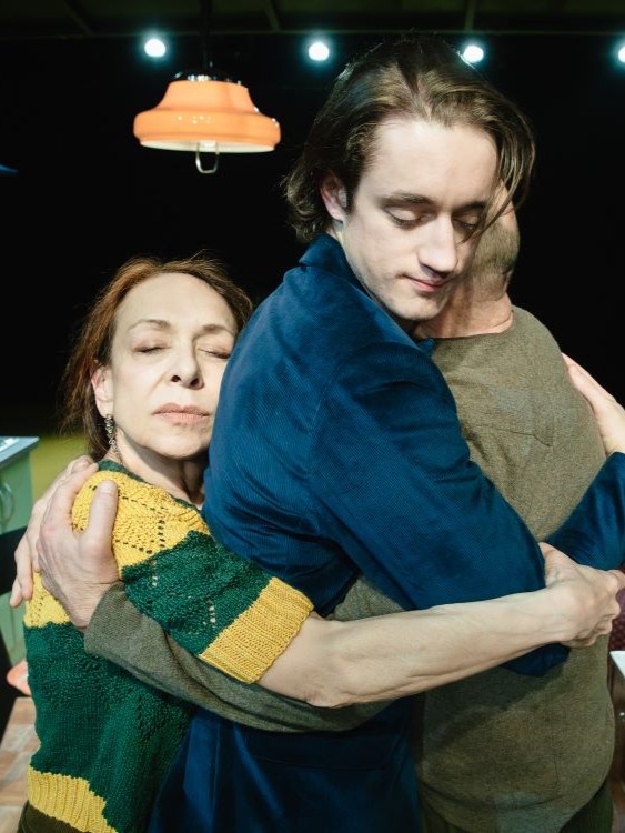 U glavnoj ženskoj ulozi ponovno briljira Doris Šarić Kukuljica koja se gotovo potpuno predaje dokumentarističkome diskursu, ogoljujući habitus, bez imalo šmire, šminke i manirizma u neposrednome kontaktu s publikom. Scena je još više sužena nego što to relativno mali prostor Polaneca zahtijeva: u sredini je kocka života koja pulsira, kuhinja u kojoj se susreću članovi obitelji i iz koje povremeno ulaze u nove kocke iza kulisa, kroz jedna i/ili druga, dijagonalno postavljena vrata za publiku. Na sceni su naznake namještaja, čak konkretni dijelovi kuhinje u kojoj se zaista nekazališno može kuhati, prati, ručati, kao i fotelja, televizor i nepostojeći dijelovi namještaja na koje se samo duhovito upućuje, ali i sugerirajući prazninu nepostojanja (scenograf: Matija Blašković). U svim je kućnim promjenama od odlaska sina također obojen i nepostojeći zid kojim dočekuju sina i koji se njemu ne sviđa, kao i ništa što odgovara roditeljima, što se osjeća u pritajenoj i/ili jasno iskaznoj tenziji i netrpeljivosti. Novi je zid u publici, negdje iza gledateljstva, kao četvrti zid kroz koji dalje na mogu proći i kroz koji se ne može izići. Publika postaje sastavni dio predstave već na početku, kad u nju izravno gledaju glumci, pjevajući pjesmu o umiranju i gotovo koketirajući s njom.