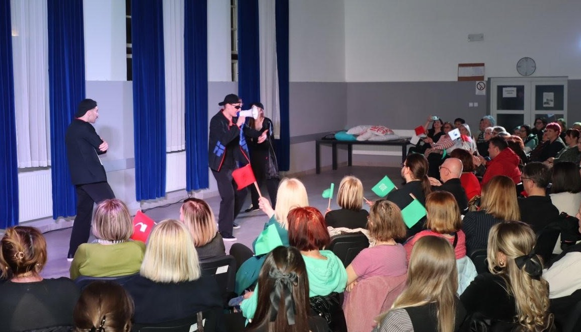 Njih je u spomenutom prostoru (a i dan kasnije u Hrvatskom domu Vukovar, na Svjetski dan kazališta) okupio redatelj Robert Raponja. Povod je bio predstava koju gledate konstantno zabavljeni i nasmijani – bilo sadržajem ili baletnom koreografijom, pojavom, dovitljivim (aktivističkim) stihovima, pjevanjem.