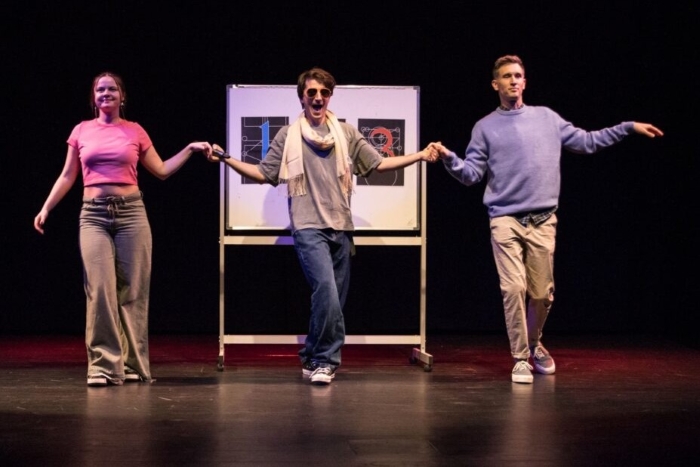 Matematika, jasno, nije tek ostala visjeti u zraku, lako je ušla u katarzični rap – zaštitni znak 55-minutne razigrane predstave čiji je autorski tim očito jako dobro osjetio bilo današnjeg hrvatskog tinejdžera i duh vremena koje nezaustavljivo hrli u sve veći zagrljaj umjetne inteligencije.