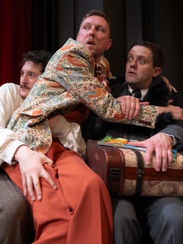 Glumci se uglavnom kreću plošno, lijevo-desno po sceni, ponekad uspostavljajući dijagonalna kretanja (koreograf: Branko Banković), tako i sjede u nizu, a često su na prosceniju zbog izravnijega kontakta s publikom, čak ponekad iziđu iz uloge jer ne mogu suzdržati smijeh, a primijećeno je i da jedan glumac sustavno netočno izgovara futur I (dogoditi će se i sl.)