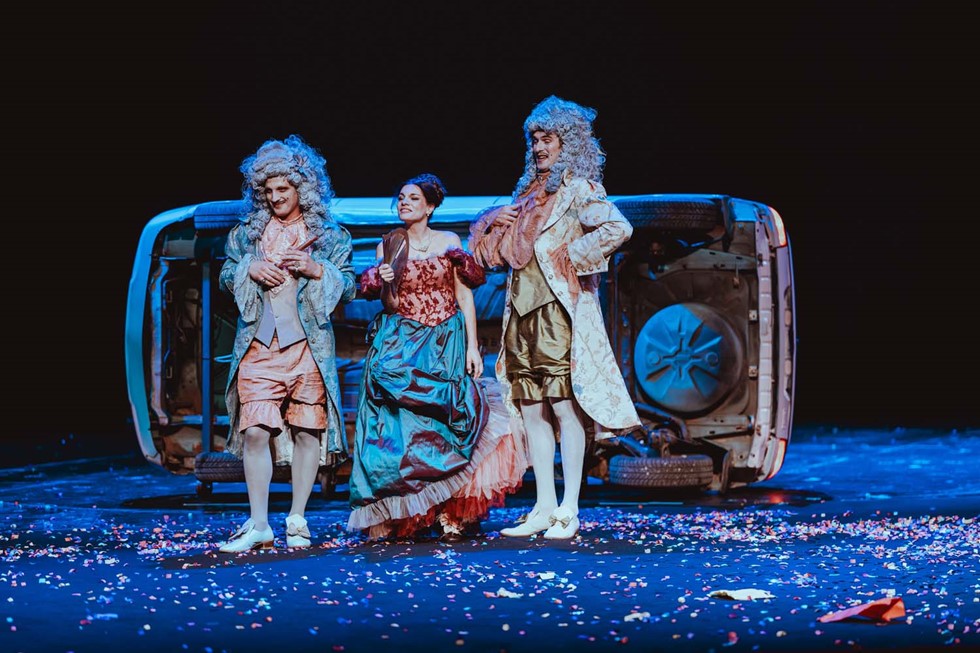 Od sama početka predstave razvidno je kako je Lolić upravo u glumačkim pojavama lucidno uvidio i njezin najveći kapital kojemu upečatljivo kostimografsko ruho pomaže tek dodatno zablistati. A upravo se to može i ustvrditi za cio glumački ansambl koji je nadasve bio vođen intrinzičnom motivacijom: osjetiti bilo tipičnih protagonista, udarati po paradoksima njihova ponašanja i manjkavostima karaktera. Plesnim pokretima, tjelesnom ekspresijom i vitalnim dijalozima glumci uspješno nadoknađuju manjak dramskoga prostora (zamišljeni francuski dvor, plesne dvorane, 17-stoljetne diližanse i aristokratske menze) koji je u konačnici i smišljeno kondenziran na puko otvaranje i zatvaranje automobilskih vrata, iz kojih uvijek simptomatično glasno izlaze protagonisti, kako bi pratilo i nagoviještalo razvoj dramske radnje iz prizora u prizor.