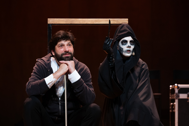 Predstava Smrt na dopustu, nastala prema romanu Kolebanje smrti portugalskog nobelovca Joséa Saramaga (u prijevodu Deana Trdaka), kolaborativna je uspješnica koju na Kerempuhovu pozornicu postavljaju redatelj Kokan Mladenović i dramaturginja Dora Delbianco koja je majstorski sažela zgusnuti jezik Saramagovog predloška.