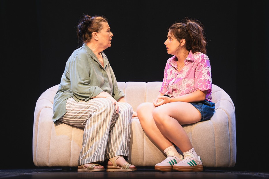 U tom jednostavnom i funkcionalnom okviru svijetli dvosjed u središtu i dva pastelno zelena stolca, po jedan sa svake strane – scenografija su kako ju je zamislila Irena Kraljić. Sveden na minimum i nepromjenjiv, ovakav koncept (pokazalo se i u centrima za kulturu Đakova i Valpova) funkcionira u svim prostorima i situacijama, jer je savršeno neutralan okvir za neometanu izmjenu i nadovezivanje priča na sceni. Upravo zbog te ambijentalne nenametljivosti, fokus ostaje na tekstu, glumicama i dobro uštimanom ritmu predstave.